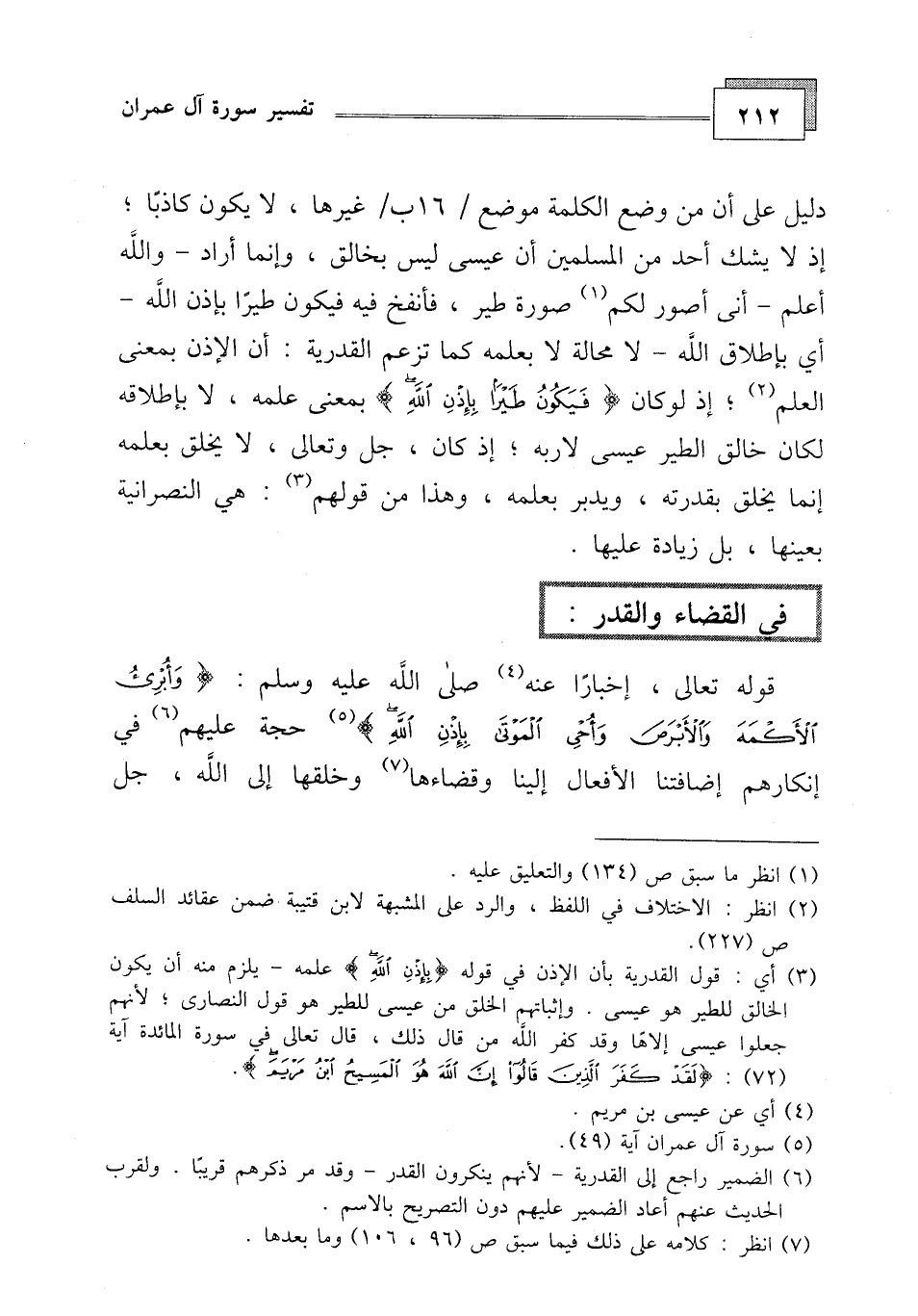 بمعنى علمه، لا بإطلاقه لكان خالق الطير عيسى لا ربه، إذ كان، جل وتعالى، لا يخلق بعلمه إنما يخلق بقدرته، ويدبر بعلمه، وهذا من قولهم: هي النصرانية بعينها، بل زيادة عليها.
