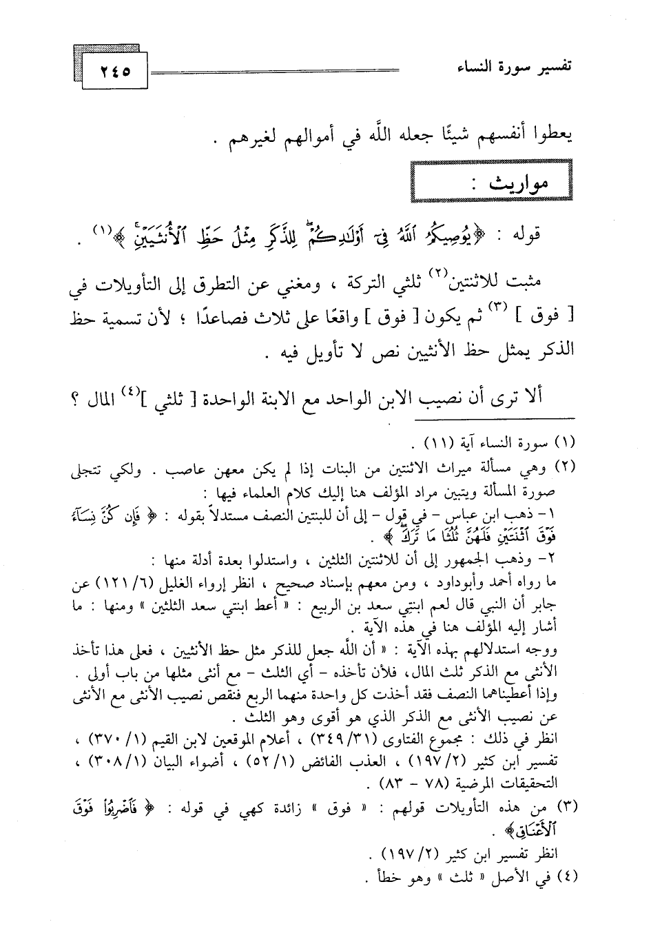 مثبت للاثنتين ثلثي التركة، ومغني عن التطرق إلى التأويلات في