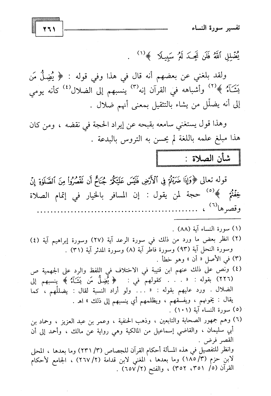 قوله تعالى (وَإِذَا ضَرَبْتُمْ فِي الْأَرْضِ فَلَيْسَ عَلَيْكُمْ جُنَاحٌ أَنْ تَقْصُرُوا مِنَ الصَّلَاةِ إِنْ خِفْتُمْ أَنْ يَفْتِنَكُمُ الَّذِينَ كَفَرُوا)