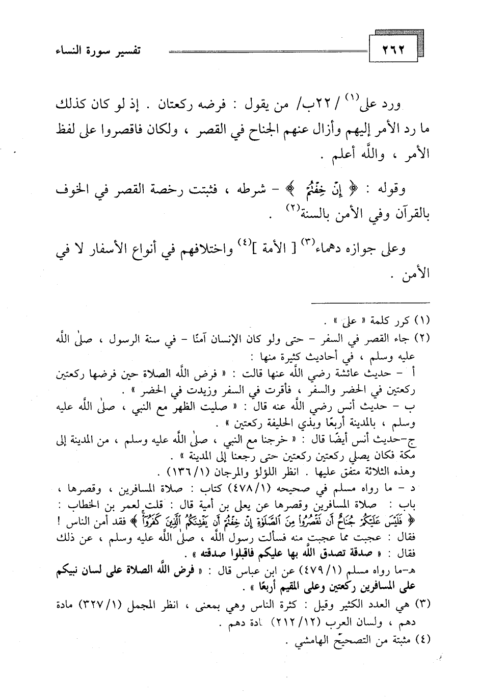 وقوله: (إِنْ خِفْتُمْ) - شرطه، فثبتت رخصة القصر في الخوف بالقرآن وفي الأمن بالسنة.