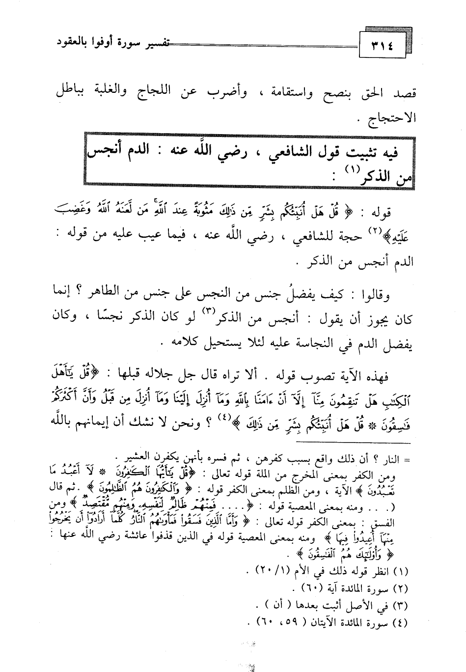 حجة للشافعي، رضي الله عنه، فيما عيب عليه من قوله: الدم أنجس من الذكر.