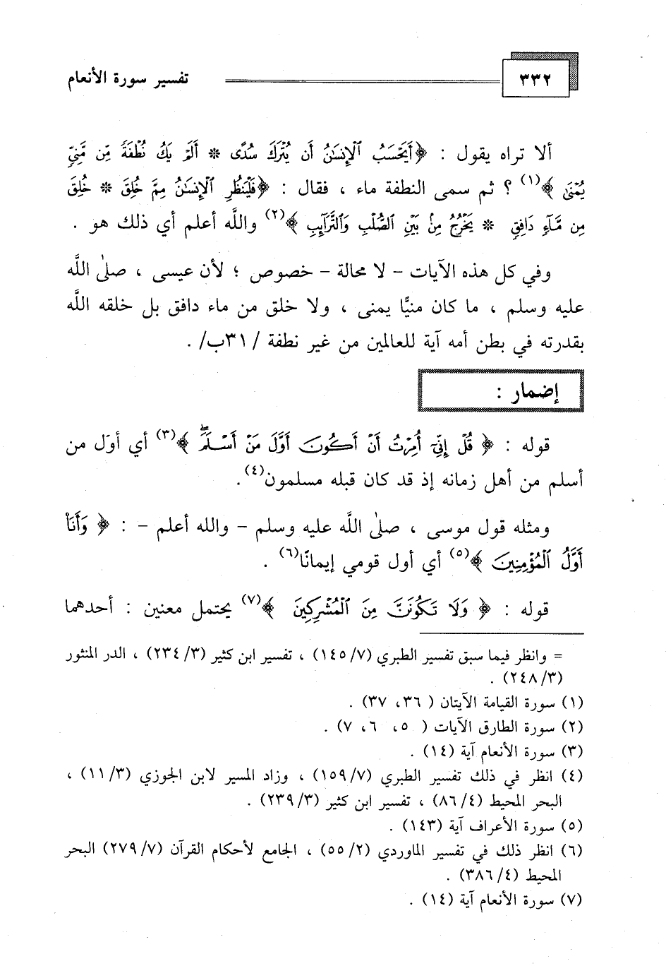 ألا تراه يقول: (أَيَحْسَبُ الْإِنْسَانُ أَنْ يُتْرَكَ سُدًى (36) أَلَمْ يَكُ نُطْفَةً مِنْ مَنِيٍّ يُمْنَى (37) ، ثم سمى النطفة ماء، فقال: (فَلْيَنْظُرِ الْإِنْسَانُ مِمَّ خُلِقَ (5) خُلِقَ مِنْ مَاءٍ دَافِقٍ (6) يَخْرُجُ مِنْ بَيْنِ الصُّلْبِ وَالتَّرَائِبِ (7)