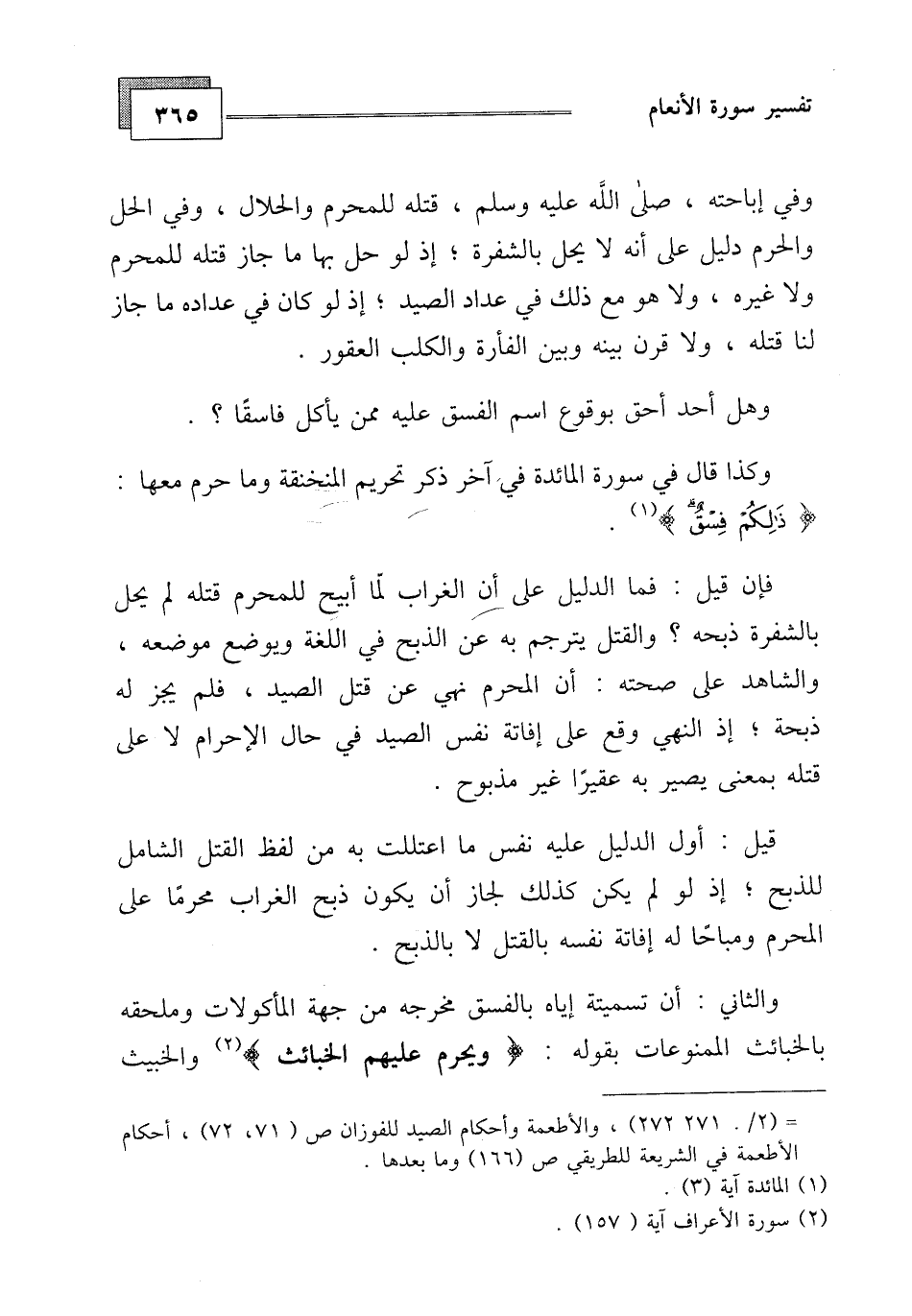 والثاني: أن تسميته إياه بالفسق مخرجه من جهة المأكولات وملحقه بالخبائث الممنوعات بقوله: (ويحرم عليهم الخبائث) والخبيث