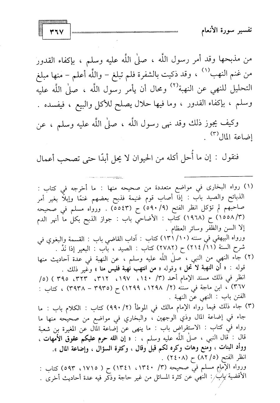 من مذبحها وقد أمر رسول الله، صلى الله عليه وسلم، بإكفاء القدور من غنم النهب، وقد ذكيت بالشفرة فلم تبلغ - والله أعلم - منها مبلغ التحليل للنهي عن النهبة ومحال أن يأمر رسول الله، صلى الله عليه وسلم، بإكفاء القدور، وما فيها حلال يصلح للأكل والبيع، فيفسده. وكيف يجوز ذلك وقد نهى رسول الله، صلى الله عليه وسلم، عن إضاعة المال