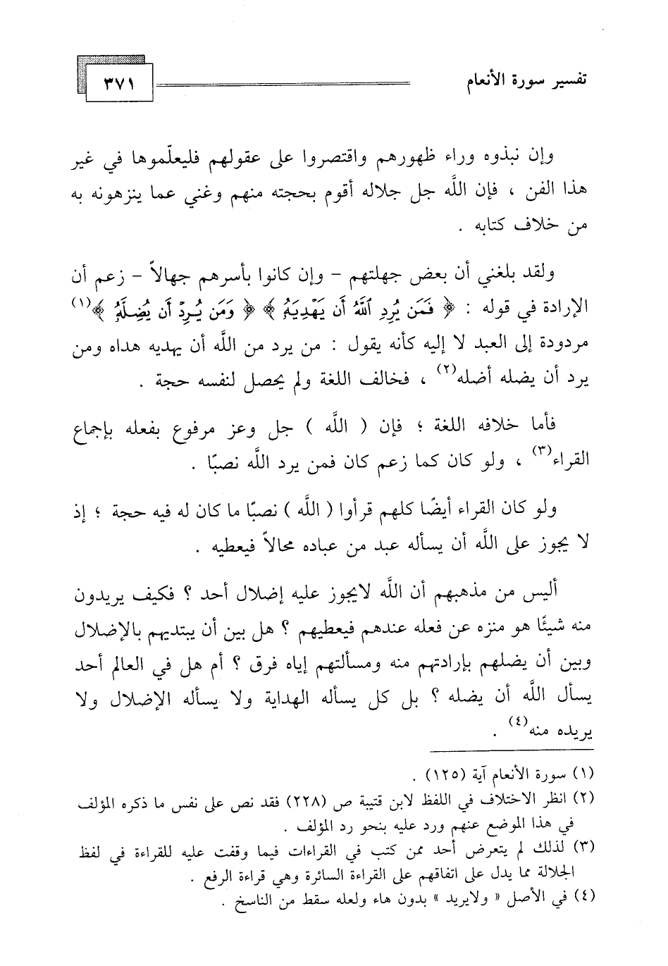 ولقد بلغني أن بعض جهلتهم - وإن كانوا بأسرهم جهالا - زعم أن الإرادة في قوله: (فَمَنْ يُرِدِ اللَّهُ أَنْ يَهْدِيَهُ) ، (وَمَنْ يُرِدْ أَنْ يُضِلَّهُ)