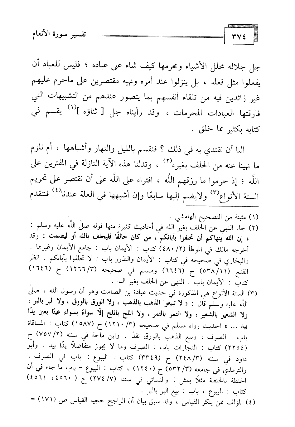 جل جلاله محلل الأشياء ومحرمها كيف شاء على عباده، فليس للعباد أن يفعلوا مثل فعله، بل ينزلوا عند أمره ونهيه مقتصرين على ما حرم عليهم غير زائدين فيه من تلقاء أنفسهم بما يتصور عندهم من التشبيهات التي فارقتها العبادات المحرمات، وقد رأيناه جل ثناؤه يقسم في كتابه بكثير مما خلق.