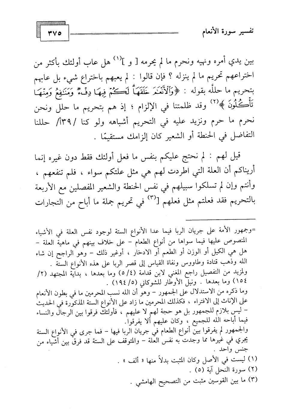 بين يدي أمره ونهيه ونحرم ما لم يحرمه وهل عاب أولئك بأكثر من اختراعهم تحريم ما لم ينزله، فإن قالوا: لم يعبهم باختراع شيء بل عابهم بتحريم ما حلله بقوله: (وَالْأَنْعَامَ خَلَقَهَا لَكُمْ فِيهَا دِفْءٌ وَمَنَافِعُ وَمِنْهَا تَأْكُلُونَ (5)