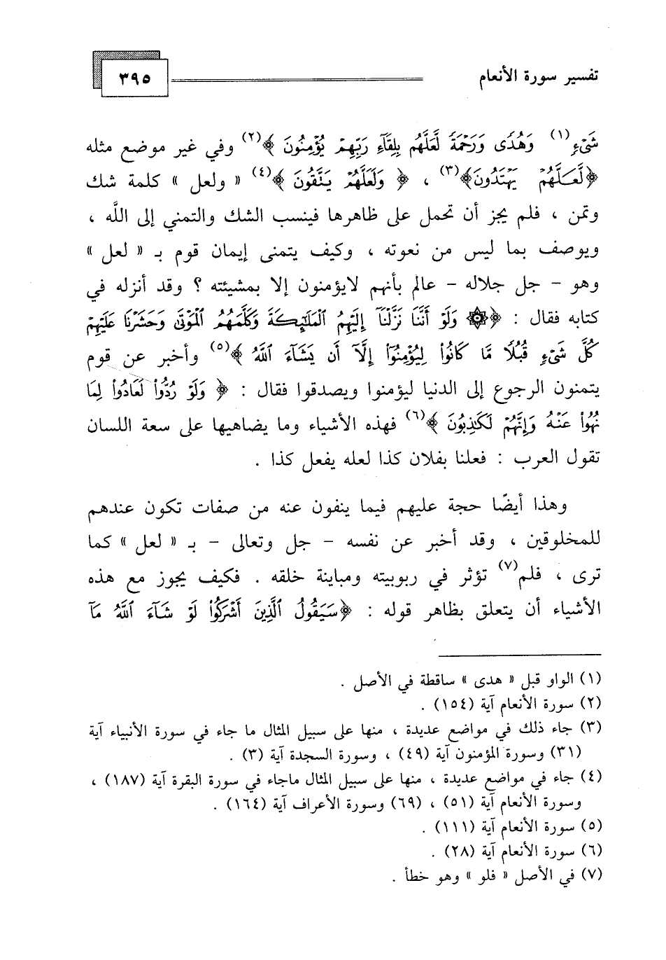 وهذا أيضا حجة عليهم فيما ينفون عنه من صفات تكون عندهم للمخلوقين، وقد أخبر عن نفسه - جل وتعالى - ب " لعل ما كما ترى، فلم تؤثر في ربوبيته ومباينة خلقه. فكيف يجوز مع هذه الأشياء أن يتعلق بظاهر قوله: (سَيَقُولُ الَّذِينَ أَشْرَكُوا لَوْ شَاءَ اللَّهُ مَا أَشْرَكْنَا)