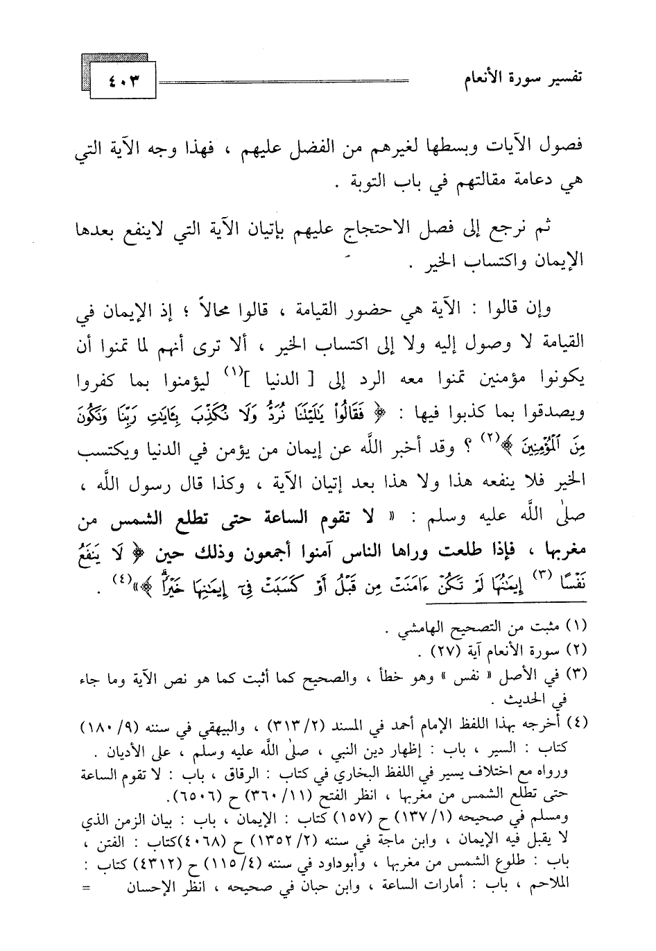 وقد أخبر الله عن إيمان من يؤمن في الدنيا ويكتسب الخير فلا ينفعه هذا ولا هذا بعد إتيان الآية، وكذا قال رسول الله، صلى الله عليه وسلم: " لا تقوم الساعة حتى تطلع الشمس من مغربها، فإذا طلعت ورآها الناس آمنوا أجمعون وذلك حين (لَا يَنْفَعُ نَفْسًا إِيمَانُهَا لَمْ تَكُنْ آمَنَتْ مِنْ قَبْلُ أَوْ كَسَبَتْ فِي إِيمَانِهَا خَيْرًا) .
