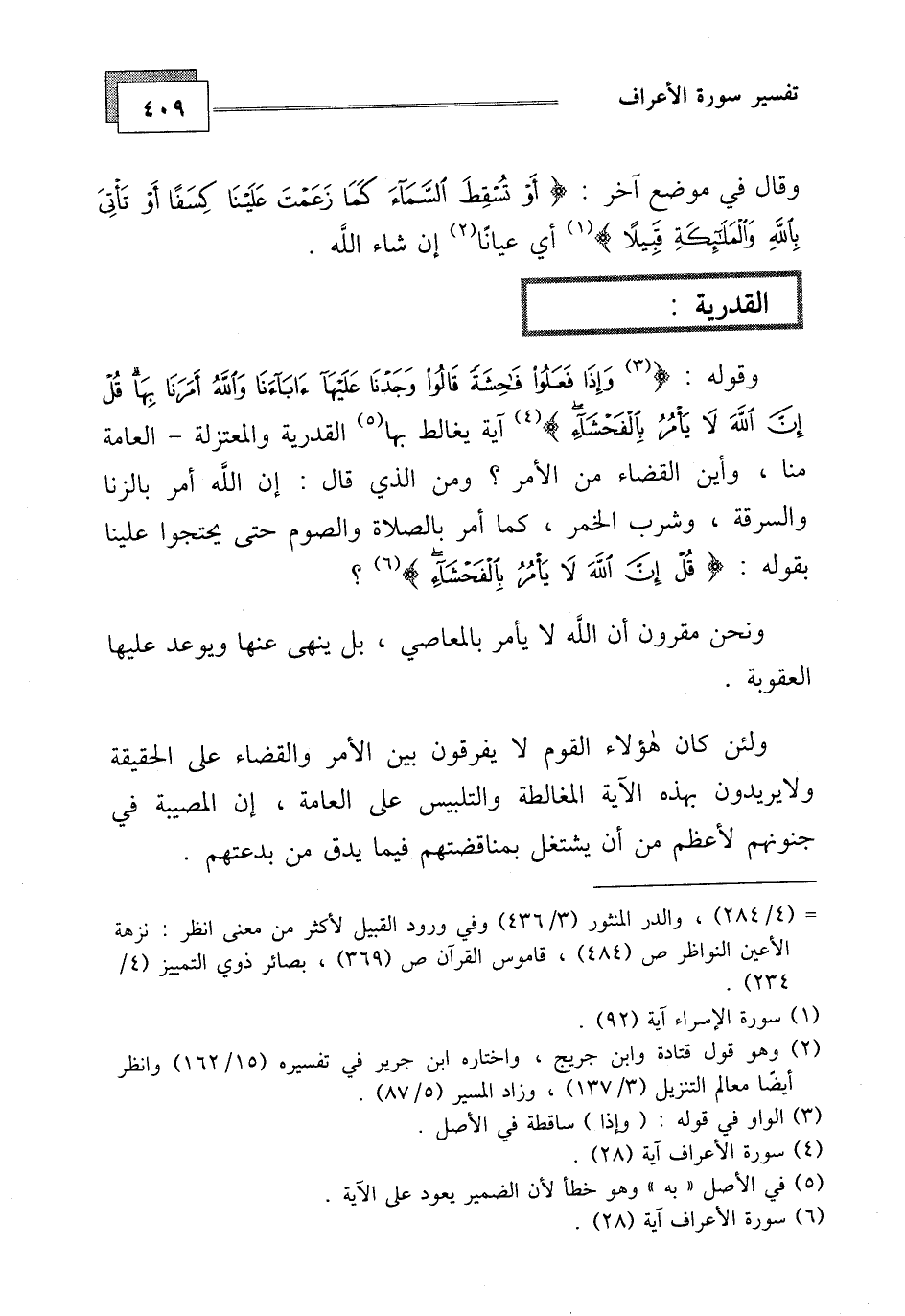 آية يغالط بها القدرية والمعتزلة - العامة منا، وأين القضاء من الأمر، ومن الذي قال: إن الله أمر بالزنا والسرقة، وشرب الخمر، كما أمر بالصلاة والصوم حتى يحتجوا علينا