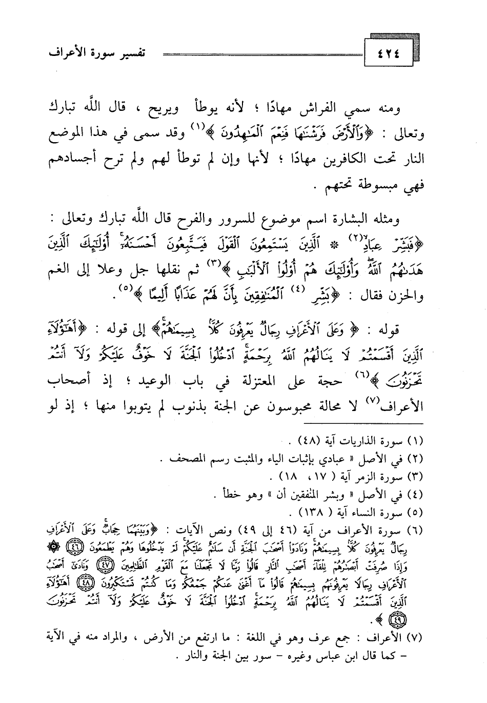 قوله: (وَعَلَى الْأَعْرَافِ رِجَالٌ يَعْرِفُونَ كُلًّا بِسِيمَاهُمْ)