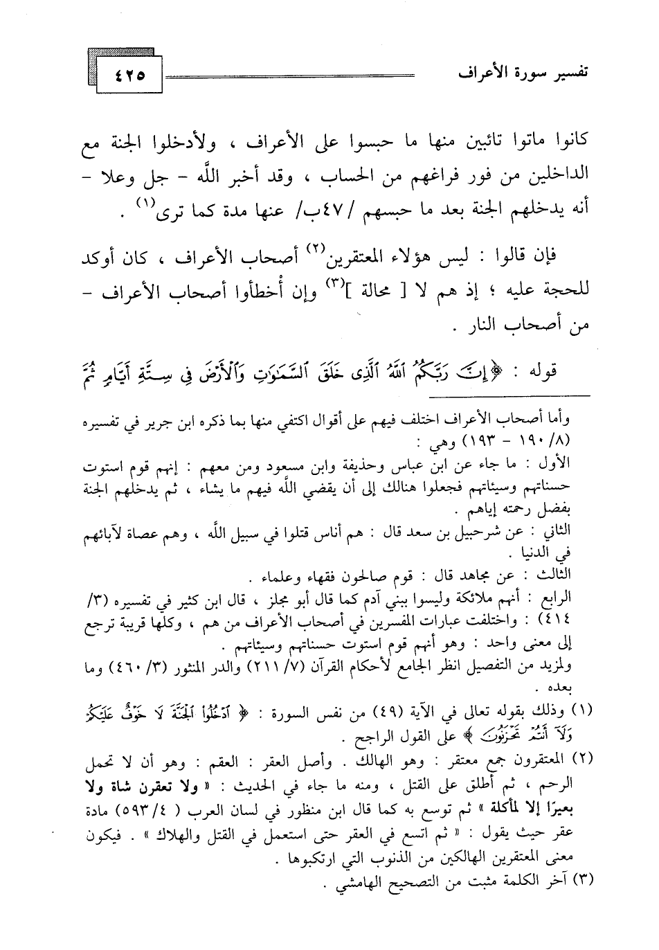 فإن قالوا: ليس هؤلاء المعتقرين أصحاب الأعراف، كان أوفد للحجة عليه، إذ هم لا محالة، وإن أخطئوا أصحاب الأعراف - من أصحاب النار.