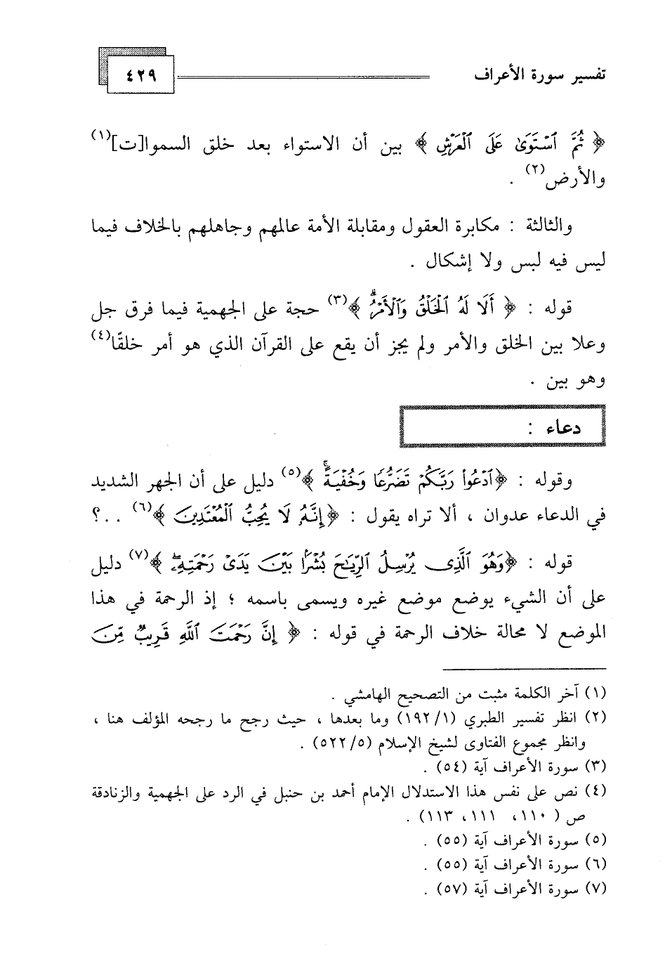 دليل على أن الجهر الشديد في الدعاء عدوان، ألا تراه يقول: (إِنَّهُ لَا يُحِبُّ الْمُعْتَدِينَ (55) ...