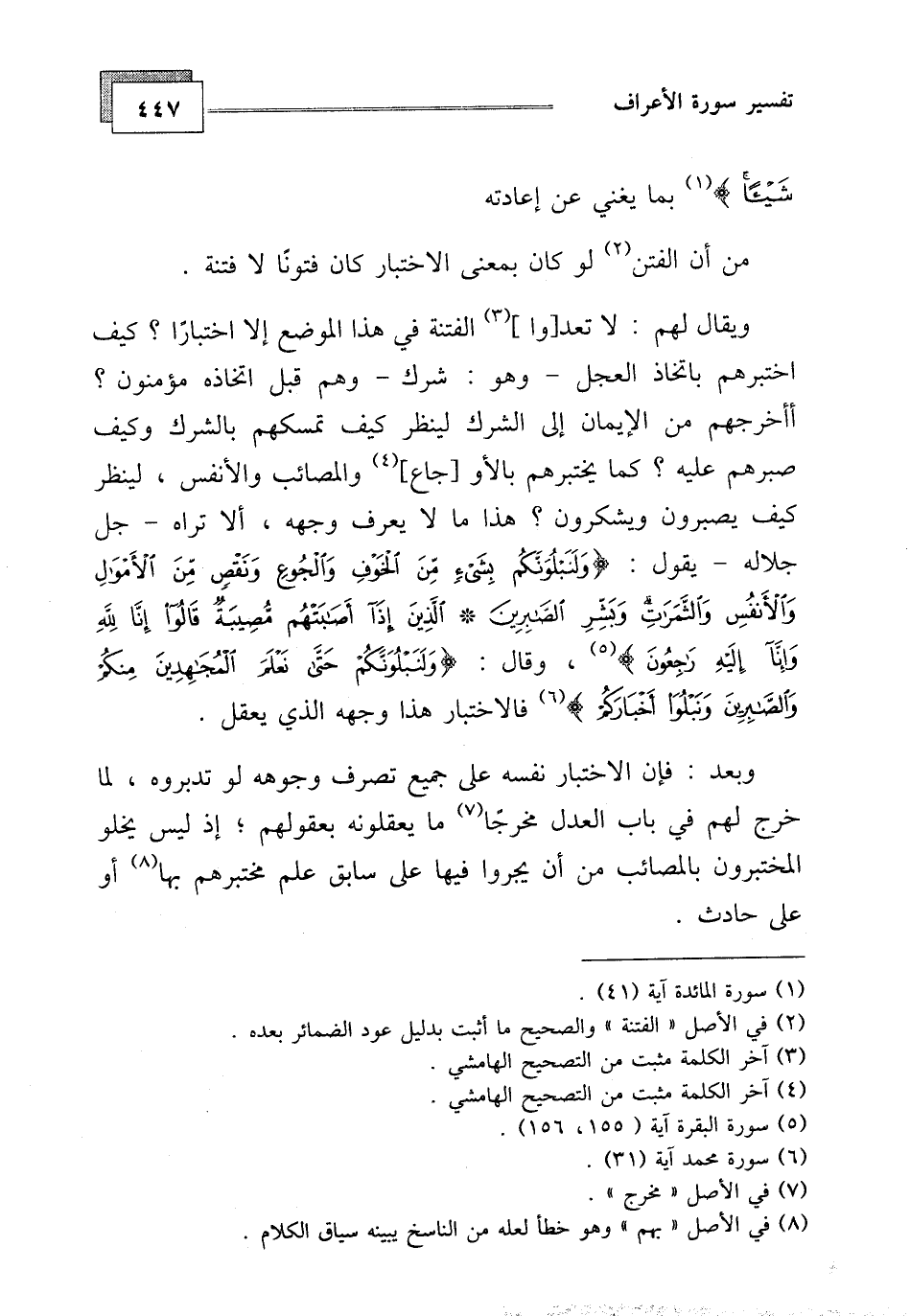 ويقال لهم: لا تعدوا الفتنة في هذا الموضع إلا اختبارا، كيف اختبرهم باتخاذ العجل - وهو: شرك - وهم قبل اتخاذه مؤمنون، أأخرجهم من الإيمان إلى الشرك لينظر كيف تمسكهم بالشرك وكيف صبرهم عليه، كما يختبرهم بالأوجاع، والمصائب والأنفس، لينظر كيف يصبرون ويشكرون، هذا ما لا يعرف وجهه، ألا تراه - جل جلاله - يقول: (وَلَنَبْلُوَنَّكُمْ بِشَيْءٍ مِنَ الْخَوْفِ وَالْجُوعِ وَنَقْصٍ مِنَ الْأَمْوَالِ وَالْأَنْفُسِ وَالثَّمَرَاتِ وَبَشِّرِ الصَّابِرِينَ (155) الَّذِينَ إِذَا أَصَابَتْهُمْ مُصِيبَةٌ قَالُوا إِنَّا لِلَّهِ وَإِنَّا إِلَيْهِ رَاجِعُونَ (156) ، وقال: وَلَنَبْلُوَنَّكُمْ حَتَّى نَعْلَمَ الْمُجَاهِدِينَ مِنْكُمْ وَالصَّابِرِينَ وَنَبْلُوَ أَخْبَارَكُمْ (31)