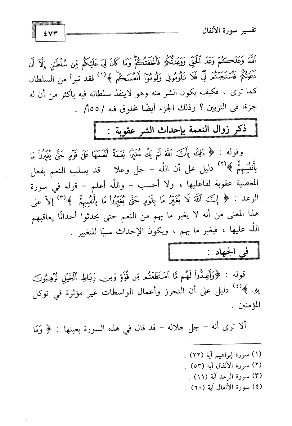 دليل على أن الله - جل وعلا - قد يسلب النعم بفعل المعصية عقوبة لفاعليها، ولا أحسب - والله أعلم - قوله في سورة الرعد: (إِنَّ اللَّهَ لَا يُغَيِّرُ مَا بِقَوْمٍ حَتَّى يُغَيِّرُوا مَا بِأَنْفُسِهِمْ)
