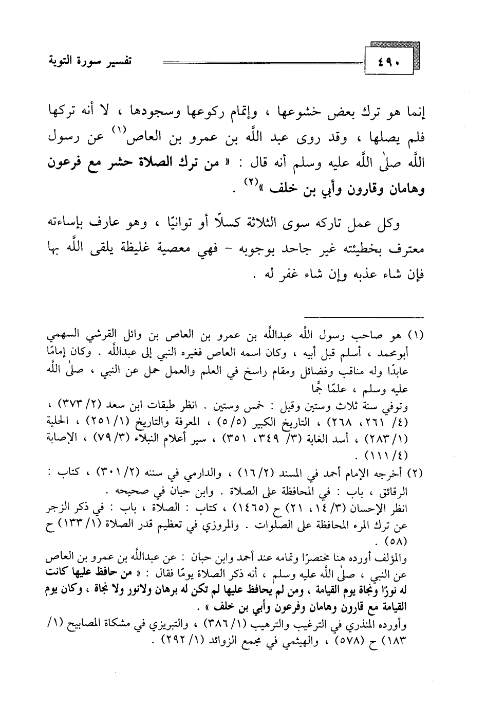 إنما هو ترك بعض خشوعها، وإتمام ركوعها وسجودها، لا أنه تركها فلم يصلها، وقد روى عبد الله بن عمرو بن العاص عن رسول الله صلى الله عليه وسلم أنه قال: " من ترك الصلاة حشر مع فرعون وهامان وقارون وأبي بن خلف ".