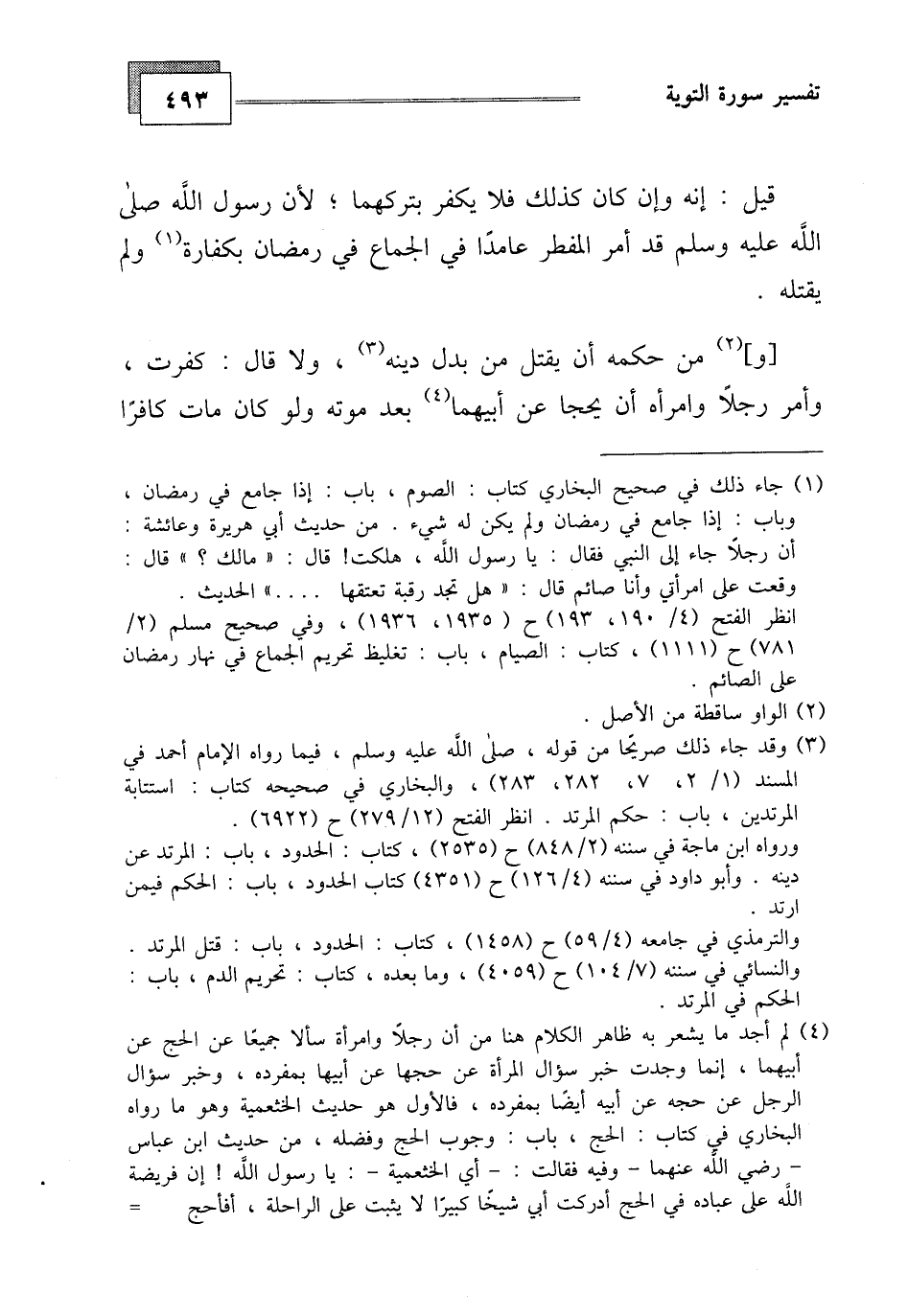 ومن حكمه أن يقتل من بدل دينه، ولا قال: كفرت، وأمر رجلا وامرأة أن يحجا عن أبيهما بعد موته ولو كان مات كافرا