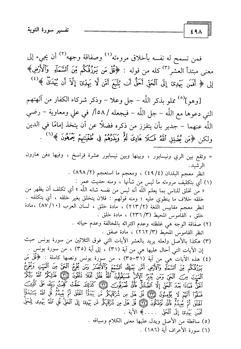 وهو مملو بذكر الله - جل وعلا - وذكر شركاء الكفار من آلهتهم التي دعوها مع الله - جل الله - فيجعله في علي ومعاوية - رضي الله عنهما - جدير بأن يتقزز من ذكره فضلا عن أن يتخذ إماما في الدين ولكن (مَنْ يُضْلِلِ اللَّهُ فَلَا هَادِيَ لَهُ وَيَذَرُهُمْ فِي طُغْيَانِهِمْ يَعْمَهُونَ (186) .
