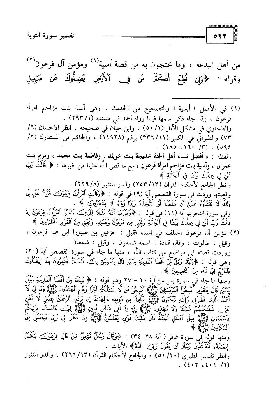 من أهل البدعة وما يحتجون به من قصة آسية ومؤمن آل فرعون