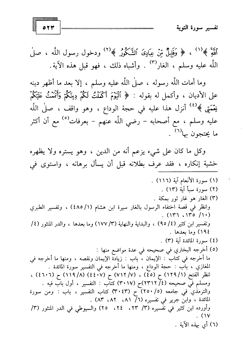 أنزل هذا عليه في حجة الوداع، وهو واقف، صلى الله عليه وسلم، مع أصحابه - رضي الله عنهم - بعرفات مع أن أكثر ما يحتجون بها.