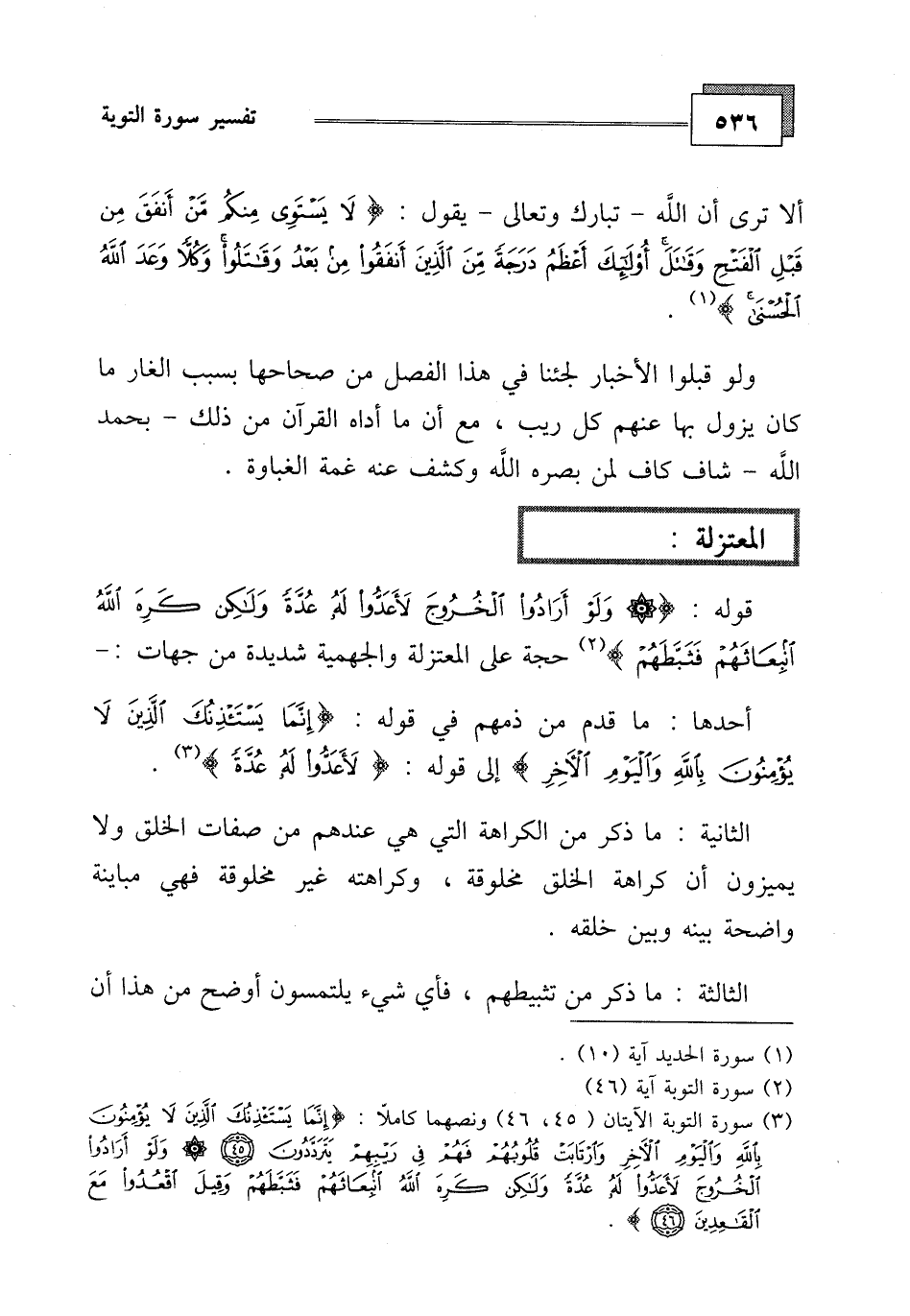 قوله: (وَلَوْ أَرَادُوا الْخُرُوجَ لَأَعَدُّوا لَهُ عُدَّةً وَلَكِنْ كَرِهَ اللَّهُ انْبِعَاثَهُمْ فَثَبَّطَهُمْ)