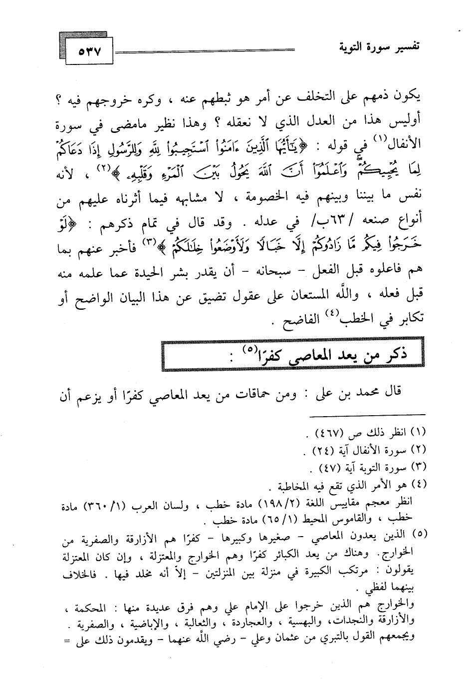قال محمد بن على: ومن حماقات من يعد المعاصي كفرا أو يزعم أن