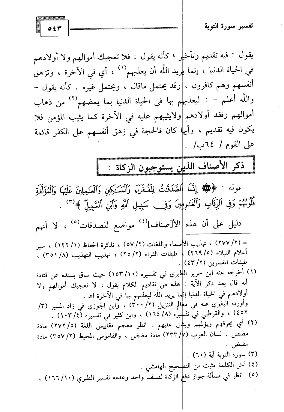 قوله: (إِنَّمَا الصَّدَقَاتُ لِلْفُقَرَاءِ وَالْمَسَاكِينِ وَالْعَامِلِينَ عَلَيْهَا وَالْمُؤَلَّفَةِ قُلُوبُهُمْ وَفِي الرِّقَابِ وَالْغَارِمِينَ وَفِي سَبِيلِ اللَّهِ وَابْنِ السَّبِيلِ) .
