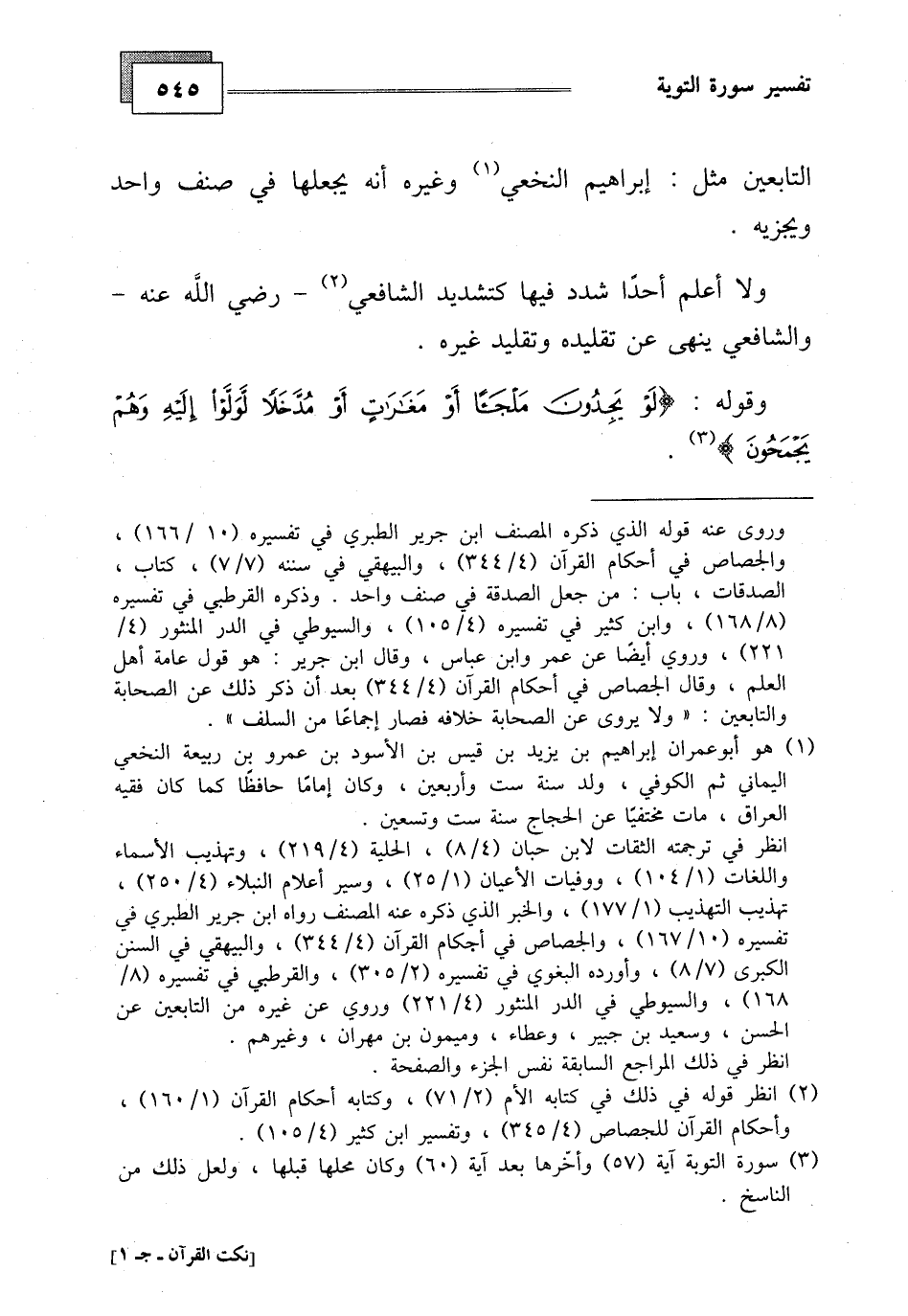 التابعين مثل إبراهيم النخعي وغيره أنه يجعلها في صنف واحد