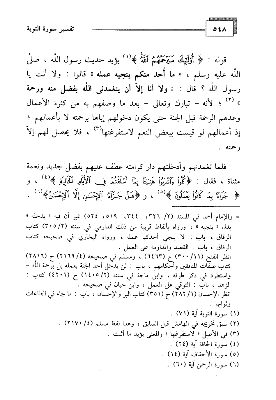 يؤيد حديث رسول الله - صلى الله عليه وسلم - " ما أحد منكم ينجيه عمله " قالوا: ولا أنت يا رسول الله، قال: " ولا أنا إلا أن يتغمدني الله بفضل منه ورحمة "،