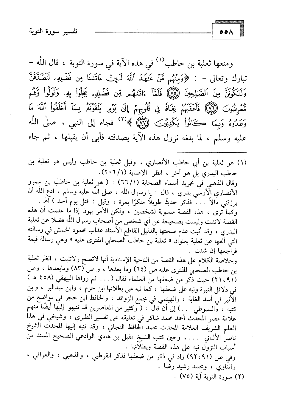 وخلاصة الكلام على هذه القصة من الناحية الإسنادية أنها لا تصح ولا تثبت، انظر ثعلبة بن حاطب الصحابي المفترى عليه ص (64) وما بعدها، وص (83) ومابعدها، وص (91، 21) حيث ذكر من ضعفها من العلماء فقال ( ... ثم رواها البيهقي (458 هـ) في دلائل النبوة ونبه على ضعفها، كما نبه على بطلانها ابن حزم، وابن عبد البر، وابن الأثير في أسد الغابة، والهيثمي في مجمع الزوائد، والحافظ ابن حجر في مواضع من كتبه، والسيوطي..) إلى أن قال: وكثير من المعاصرين قد تنبهوا إليها أيضا منهم علامة مصر المحدث أحمد محمد شاكر في تعليقه على تفسير الطبري، وشيخي في هذا العلم الشريف العلامة المحدث محمد الحافظ التجاني، وقد تنبه إليها المحدث الشيخ ناصر الألباني ... ، وحين كتب الشيخ مقبل بن هادي الواقعي الصحيح المسند من أسباب النزول نبه على هذه القصة وبطلانها.