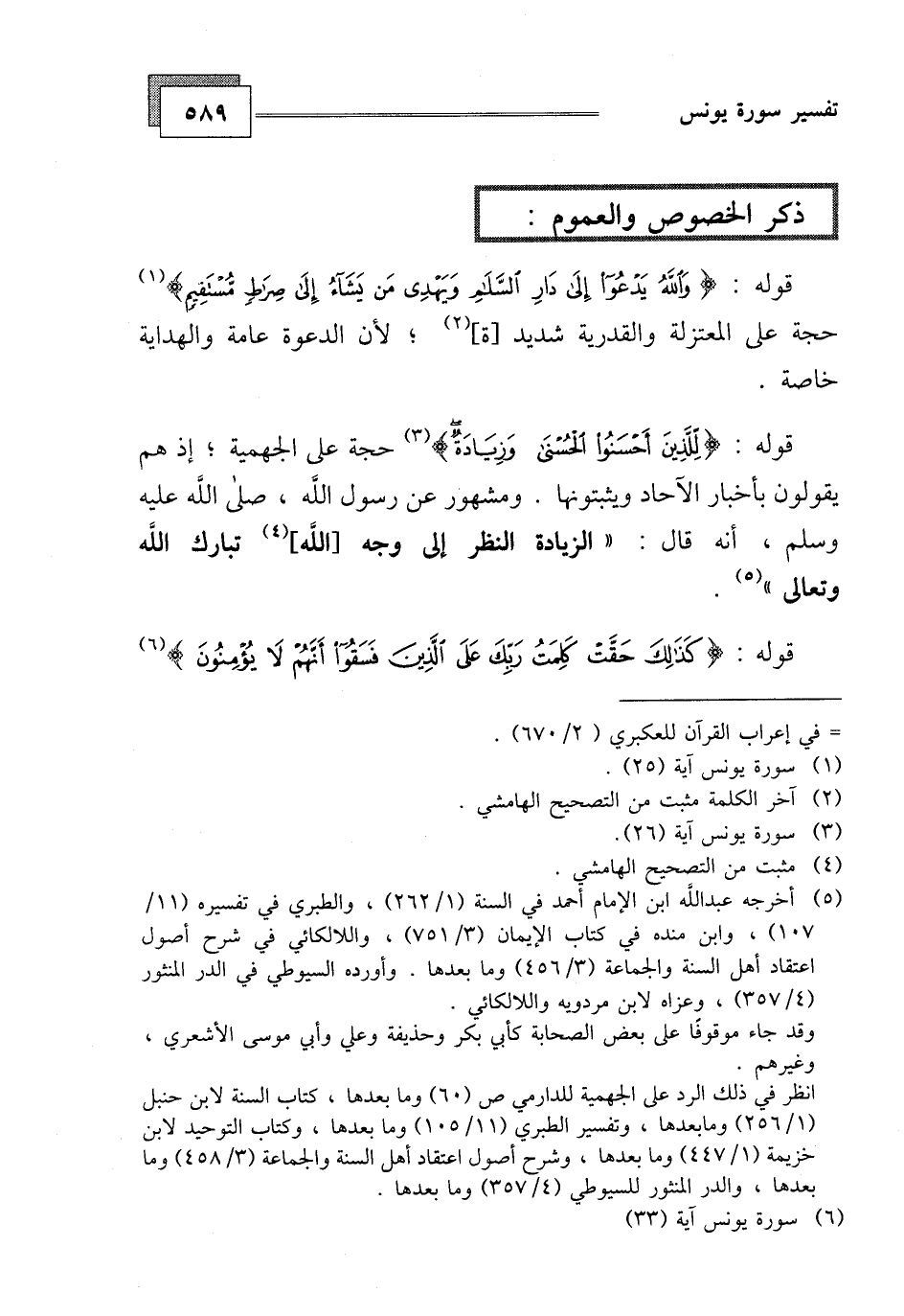 حجة على الجهمية، إذ هم يقولون بأخبار الآحاد ويثبتونها. ومشهور عن رسول الله، صلى الله عليه وسلم، أنه قال: " الزيادة النظر إلى وجه الله، تبارك الله وتعالى ".