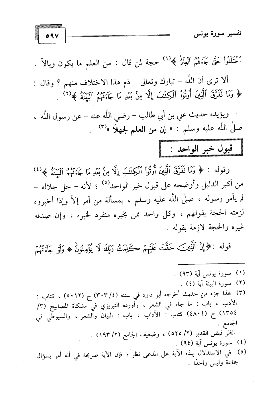 ألا ترى أن الله - تبارك وتعالى - ذم هذا الاختلاف منهم، وقال (وَمَا تَفَرَّقَ الَّذِينَ أُوتُوا الْكِتَابَ إِلَّا مِنْ بَعْدِ مَا جَاءَتْهُمُ الْبَيِّنَةُ (4) ة) .