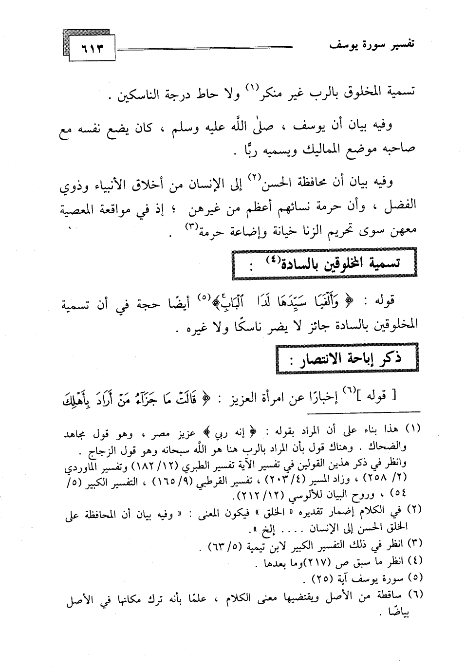 حجة في أن تسمية المخلوقين بالسادة جائز لا يضر ناسكا ولا غيره.