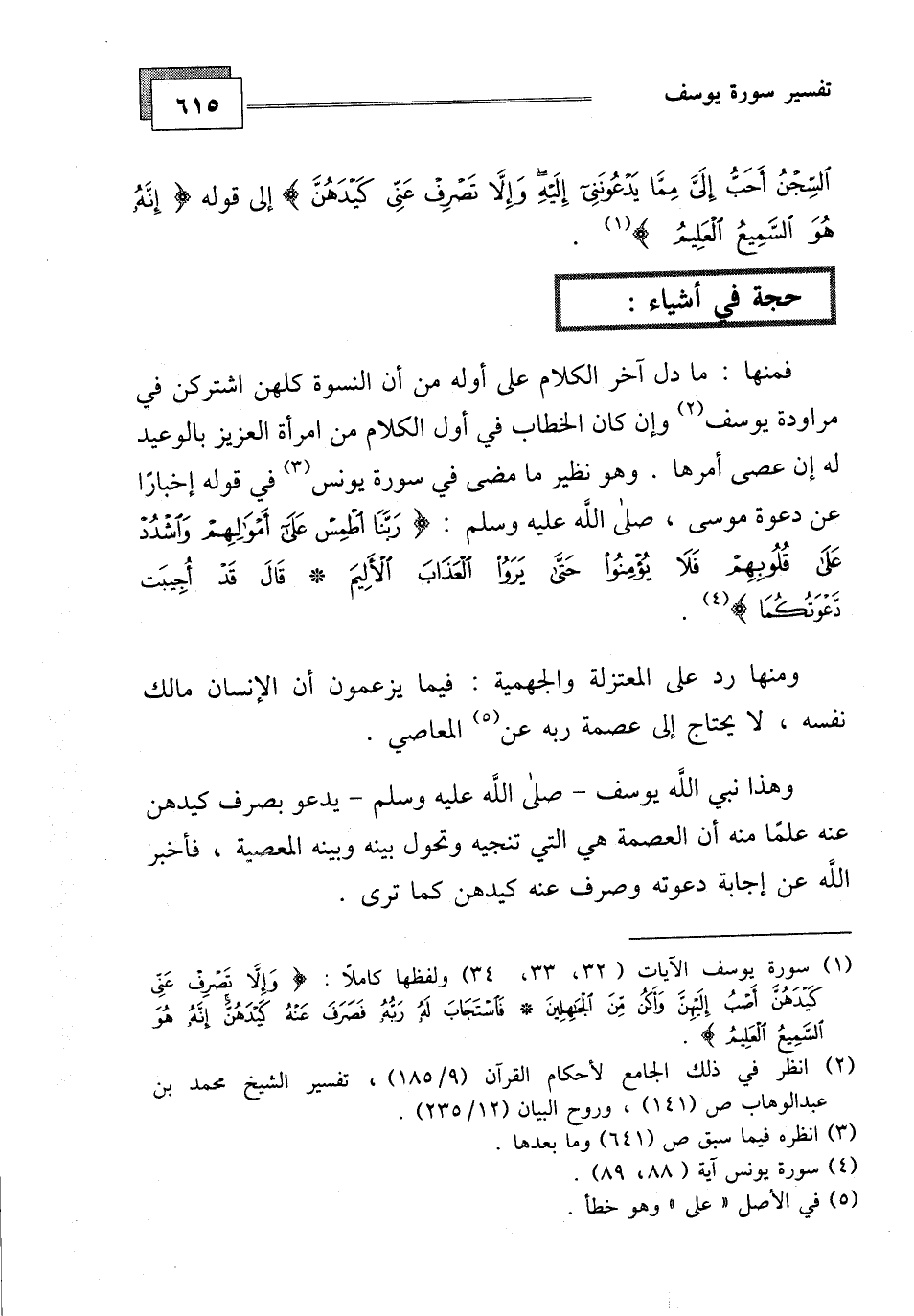 ومنها رد على المعتزلة والجهمية: فيما يزعمون أن الإنسان مالك نفسه، لا يحتاج إلى عصمة ربه عن المعاصي.