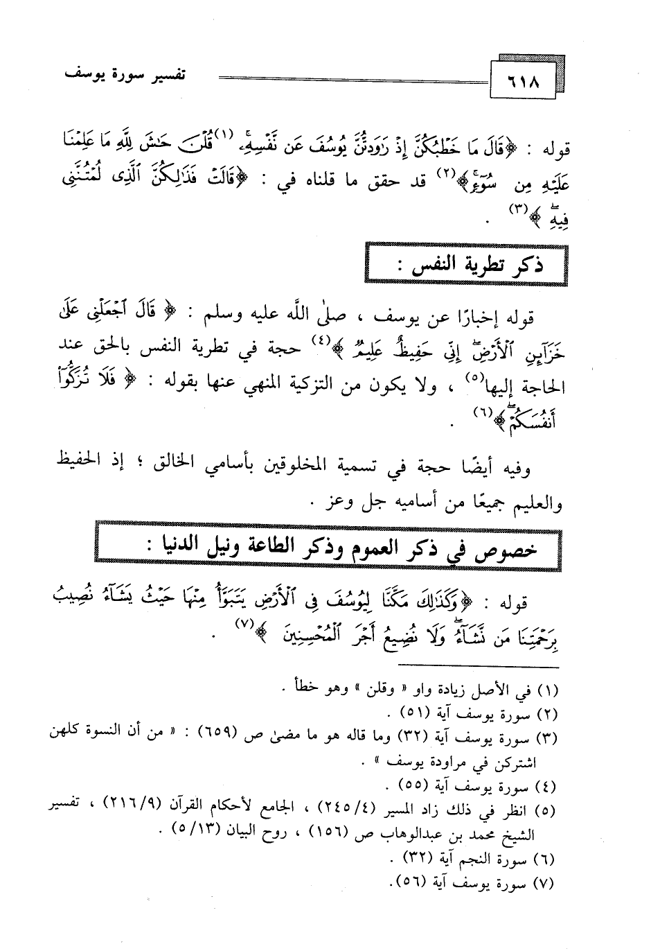 قوله: (قَالَ مَا خَطْبُكُنَّ إِذْ رَاوَدْتُنَّ يُوسُفَ عَنْ نَفْسِهِ قُلْنَ حَاشَ لِلَّهِ مَا عَلِمْنَا عَلَيْهِ مِنْ سُوءٍ)