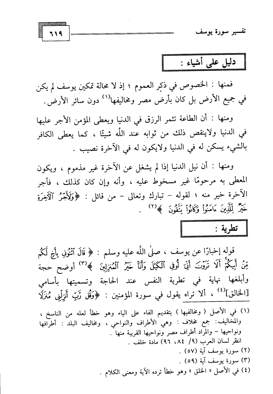 ومنها: أن نيل الدنيا إذا لم يشغل عن الآخرة غير مذموم، ويكون المعطى به موصوفا غير مسخوط عليه، وأنه وإن كان كذلك، فأجر الآخرة خير منه، لقوله - تبارك وتعالى - من قائل: (وَلَأَجْرُ الْآخِرَةِ خَيْرٌ لِلَّذِينَ آمَنُوا وَكَانُوا يَتَّقُونَ (57) .