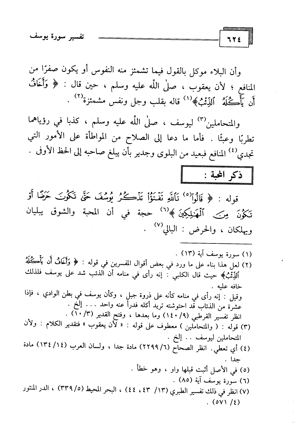 وأن البلاء موكل بالقول فيما تشمئز منه النفوس أو يكون صفرا من المنافع، لأن يعقوب، صلى الله عليه وسلم، حيث قال: (وَأَخَافُ أَنْ يَأْكُلَهُ الذِّئْبُ)