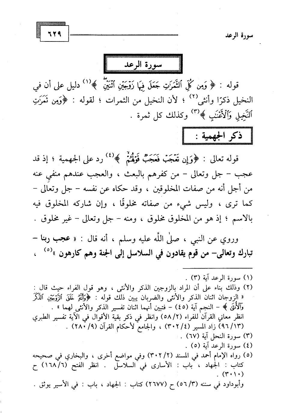 رد على الجهمية؛ إذ قد عجب - جل وتعالى - من كفرهم بالبعث، والعجب عندهم منفي عنه من أجل أنه من صفات المخلوقين، وقد حكاه عن نفسه - جل وتعالى - كما ترى، وليس شيء من صفاته مخلوقا، وإن شاركه المخلوق فيه بالاسم؛ إذ هو من المخلوق مخلوق، ومنه - جل وتعالى - غير مخلوق.