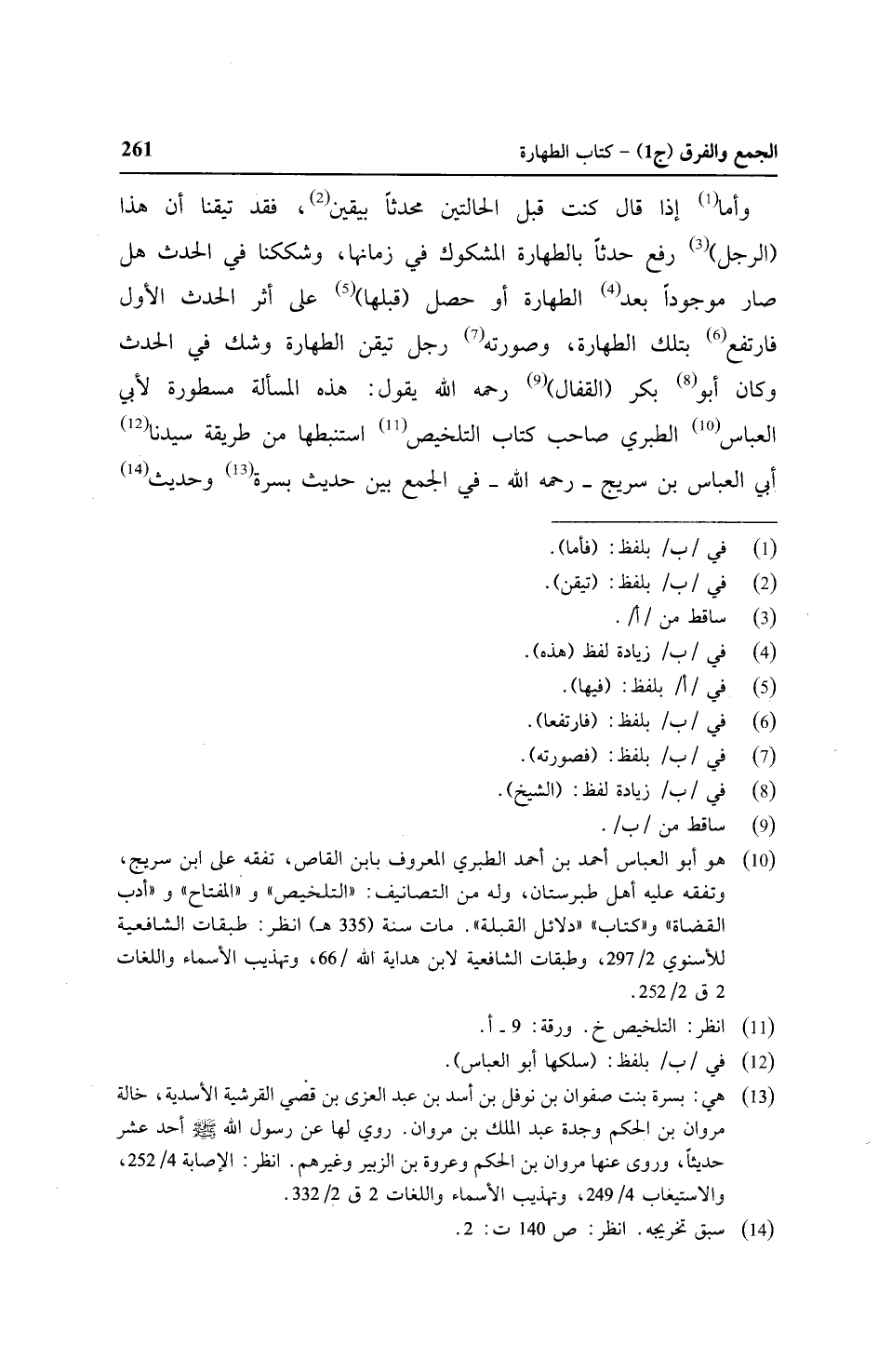 وأما إذا قال كنت قبل الحالتين محدثاً بيقين، فقد تيقنا أن هذا (الرجل) رفع حدثاً بالطهارة المشكوك في زمانها، وشككنا في الحدث هل صار موجوداً بعد الطهارة أو حصل (قبلها) على أثر الحدث الأول فارتفع بتلك الطهارة، وصورته رجل تيقن الطهارة وشك في الحدث وكان أبو بكر (القفال) رحمه الله يقول: هذه المسألة مسطورة لأبي العباس الطبري صاحب كتاب التلخيص استنبطها من طريقة سيدنا أبي العباس بن سريج - رحمه الله - في الجمع بين حديث بسرة وحديث