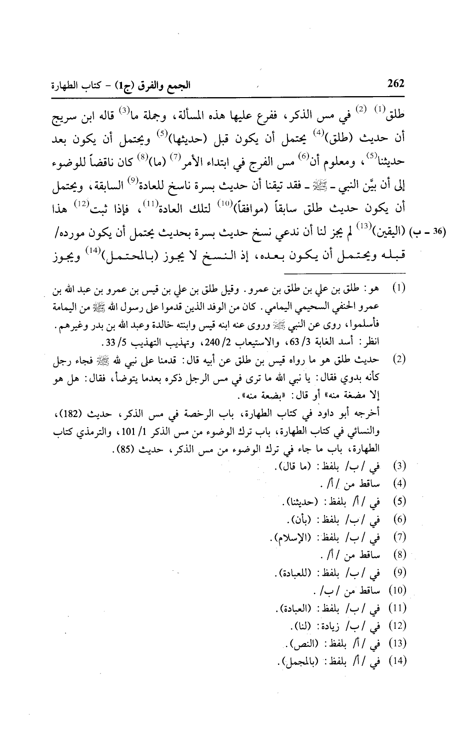طلق في مس الذكر، ففرع عليها هذه المسألة، وجملة ما قاله ابن سريج أن حديث (طلق) يحتل أن يكون قبل (حديثها) ويحتمل أن يكون بعد حديثنا، ومعلوم أن مس الفرج في ابتداء الأمر (ما) كان ناقضاً للوضوء إلى أن بيَّن النبي - صلى الله عليه وسلم - فقد تيقنا أن حديث بسرة ناسخ للعادة السابقة، ويحتمل أن يكون حديث طلق سابقاً (موافقاً) لتلك العادة، فإذا ثبت هذا (اليقين) لم يجز لنا أن ندعي نسخ حديث بسرة بحديث يحتمل أن يكون مورده/ (٣٦ - ب) قبله ويحتمل أن يكون بعده، إذ النسخ لا يجوز (بالمحتمل) ويجوز