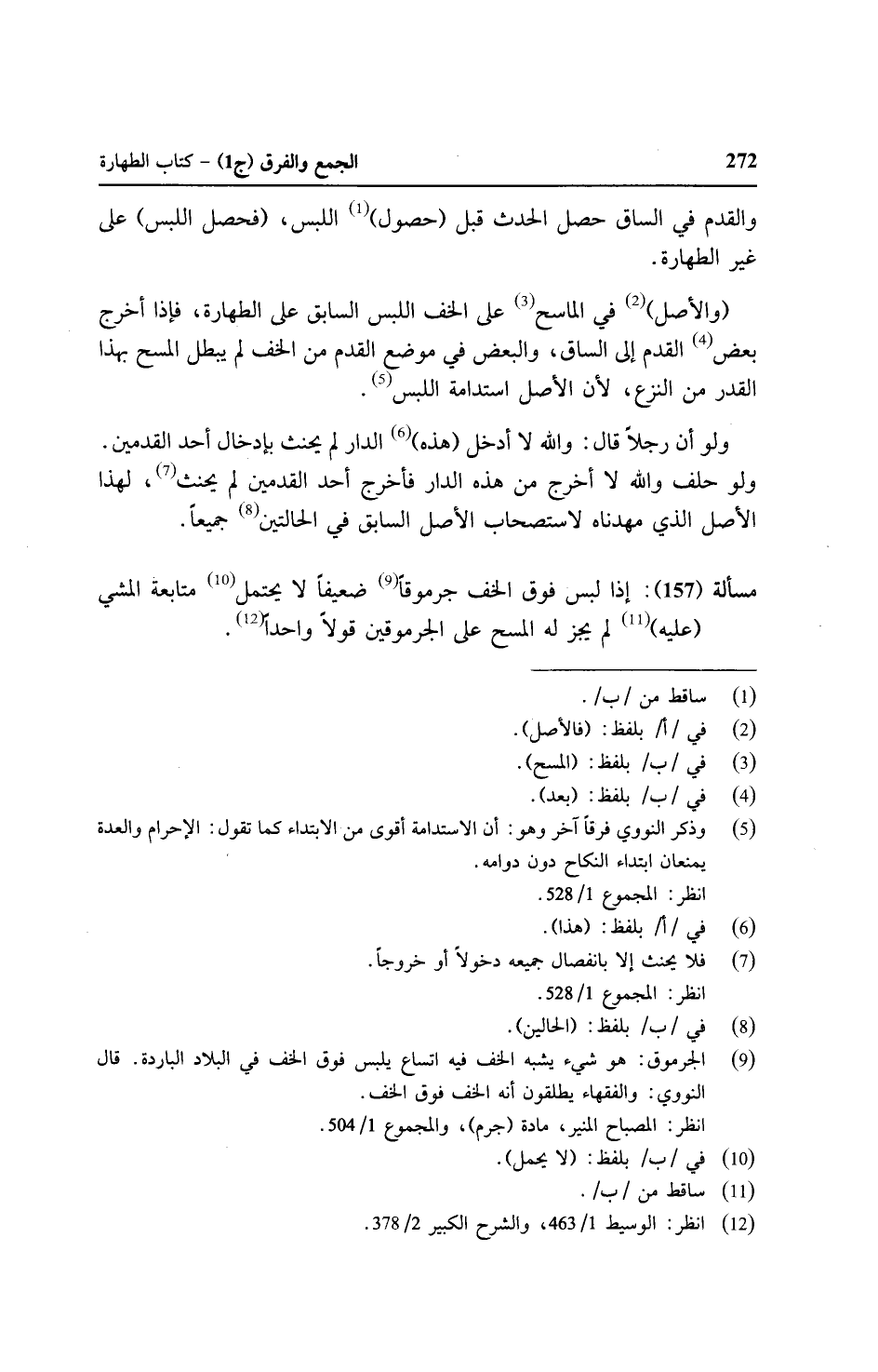 مسألة (١٥٧): إذا لبس فوق الخف جرموقاً ضعيفاً لا يحتمل متابعة المشي (عليه) لم يجز له المسح على الجرموقين قولاً واحداً.
