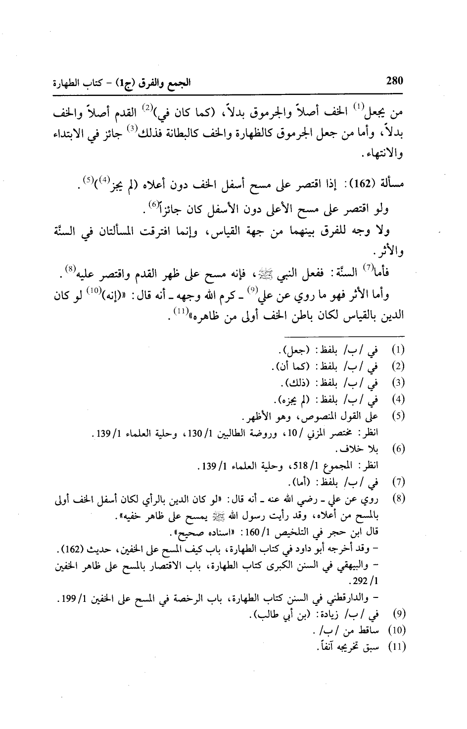 مسألة (١٦٢): إذا اقتصر على مسح أسفل الخف دون أعلاه (لم يجز).