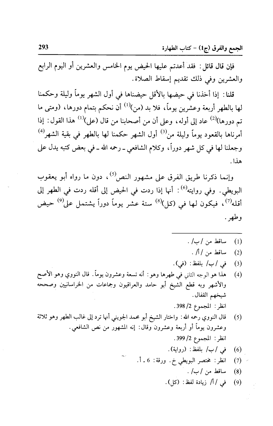 وإنما ذكرنا طريق الفرق على مشهور النص، دون ما رواه أبو يعقوب البويطي. وفي روايته: أنها إذا ردت في الحيض إلى أقله ردت في الطهر إلى أقله، فيكون لها في (كل) ستة عشر يوماً دوراً يشتمل على حيض وطهر.