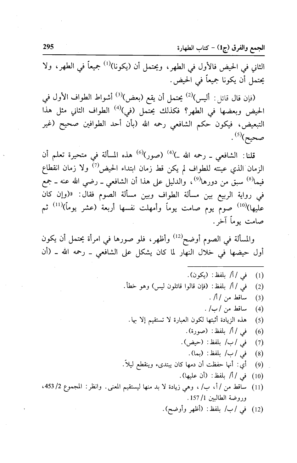 (فإن قال قائل: أليس) يحتمل أن يقع (بعض) أشواط الطواف الأول في الحيض وبعضها في الطهر؟ فكذلك يحتمل (في) الطواف الثاني مثل هذا التبعيض، فيكون حكم الشافعي رحمه الله (بأن أحد الطوافين صحيح (غير صحيح).