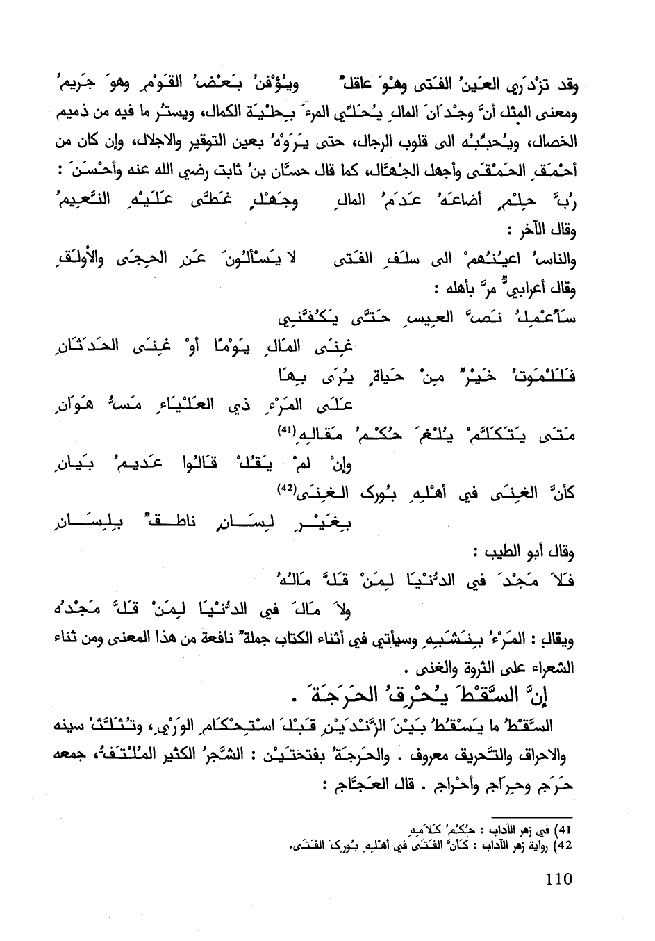 ويقال: المرء بنشبه وسيأتي في أثناء الكتاب جملة نافعة من هذا المعنى ومن ثناء الشعر على الثروة والغنى.