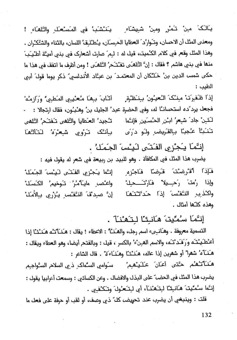 إنّما يجزي الفتى ليس الجمل.