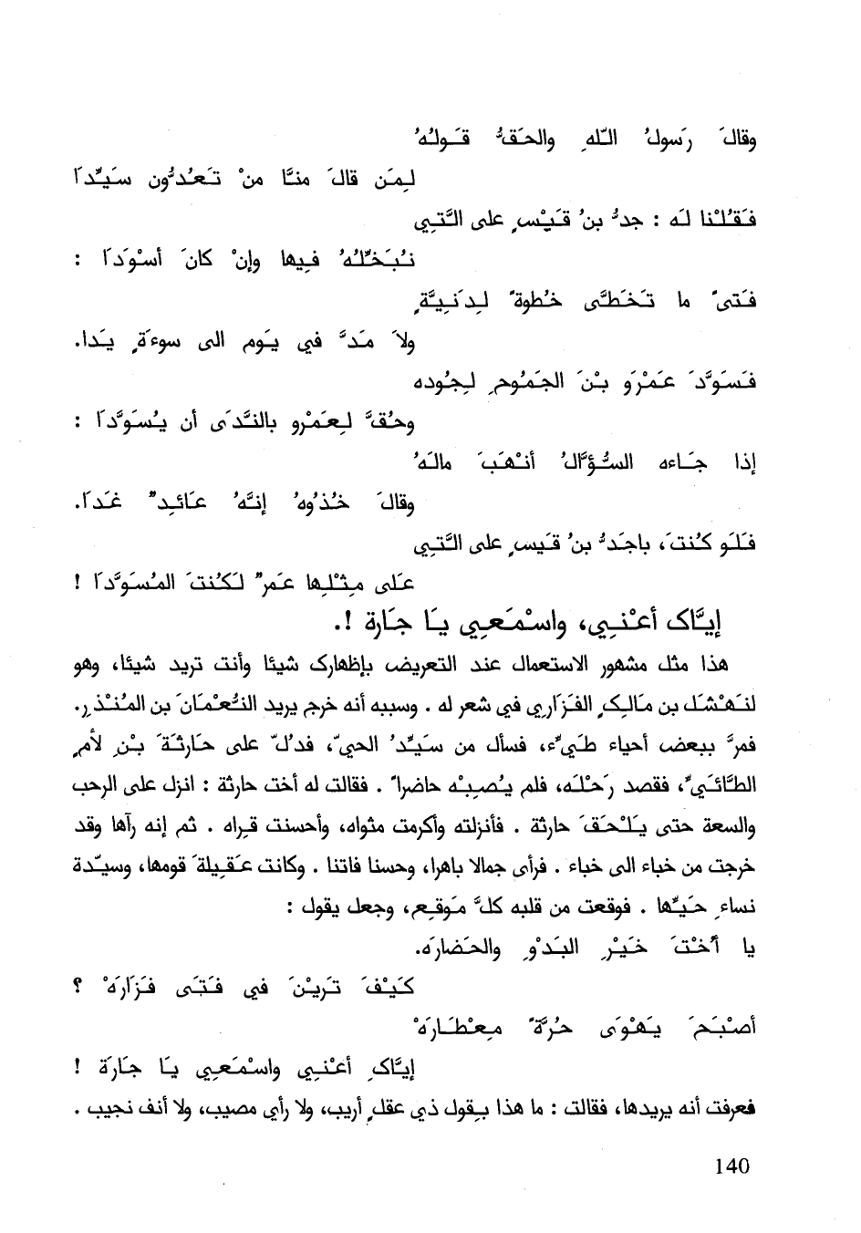 يا أخت خير البدو والحضاره ... كيف ترين في فتى فزارة؟