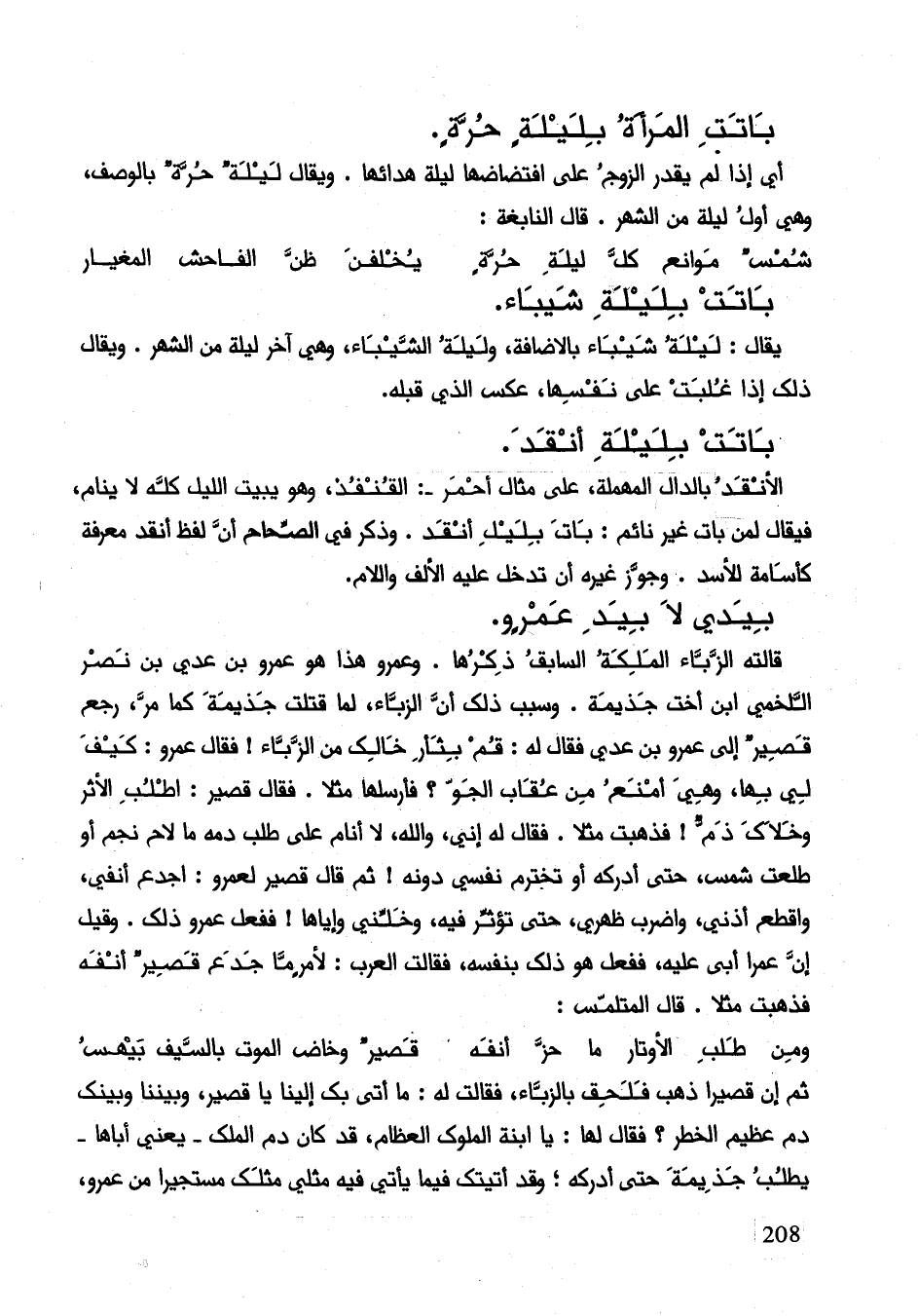 ثم إنَّ قصيرا ذهب فلحق الزباء فقالت له: ما أتى بك إلينا يا قصير وبيننا وبينك دم عظيم الخطر؟ فقال لها: يا ابنة الملوك العظام قد كان دم الملك يعني أباها يطلب جذيمة حتى أدركه؛ وقد أتيتك فيما فيه مثلي مثلك مستجيرا من عمرو،