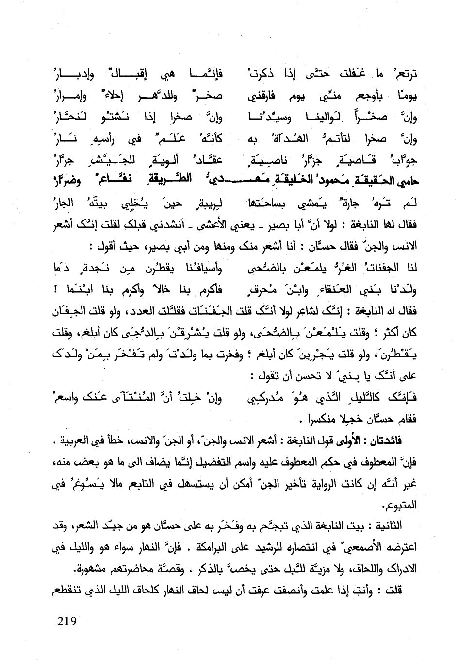 الثاني: بيت النابغة الذي تبجح به وفخر به على حسان هو من جيد الشعر، وقد اعترضه الأصمعي في انتصاره للرشيد على البرامكة. فإنَ النهار سواء هو والليل في الإدراك واللحاق ولا مزية لليل حتى يخص بالذكر. وقصة محاضرتهم مشهورة. قلت: وأنت إذا علمت وأنصفت عرفت أن ليس لحاق النهار كلحاق الليل الذي تنقطع