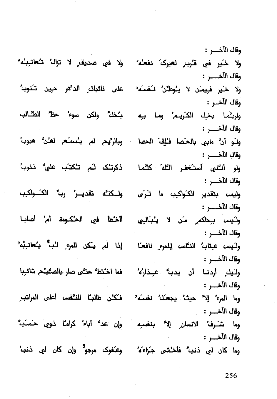 وما شرف الإنسان إلاّ بنفسه ... وإن عد أباءً كراماً ذوي حسب
